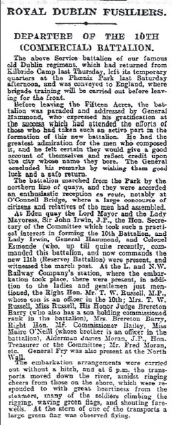 ROYAL DUBLIN FUSILIERS 4/12/1915 (Kildare Observer Report)- THE "COMMERCIAL" PALS - A NEW BATTALION